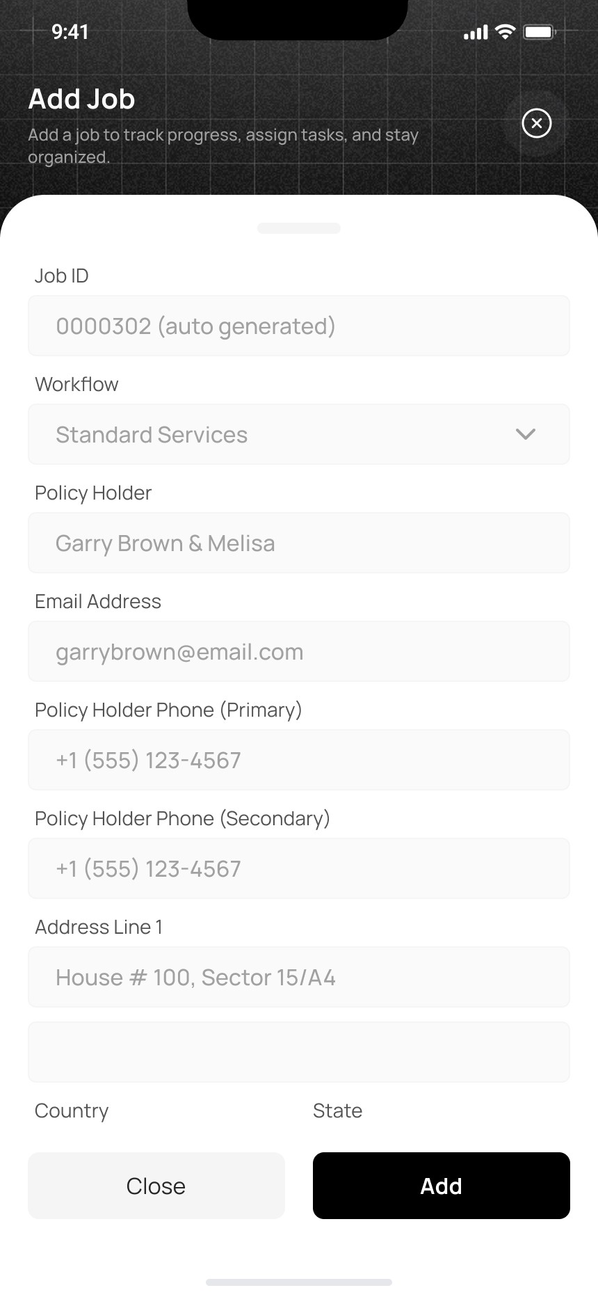 Input job details, upload photos, and assign team members in seconds.